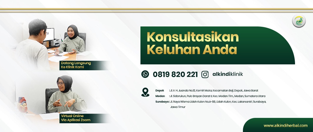 Klinik Alkindi merupakan klinik integratif yang menggabungkan pendekatan medis konvensional (farmakologi/kimia) dengan terapi herbal terstandar dalam satu sistem penanganan yang komprehensif. Selama lebih dari 17 tahun berdedikasi untuk masyarakat Indonesia, Klinik Alkindi mengembangkan pendekatan terapi yang berbasis **evidence dan pembuktian klinis, sehingga penggunaan herbal tidak hanya bersifat tradisional, tetapi juga didukung oleh pendekatan ilmiah, pemantauan medis, serta standar formulasi modern.